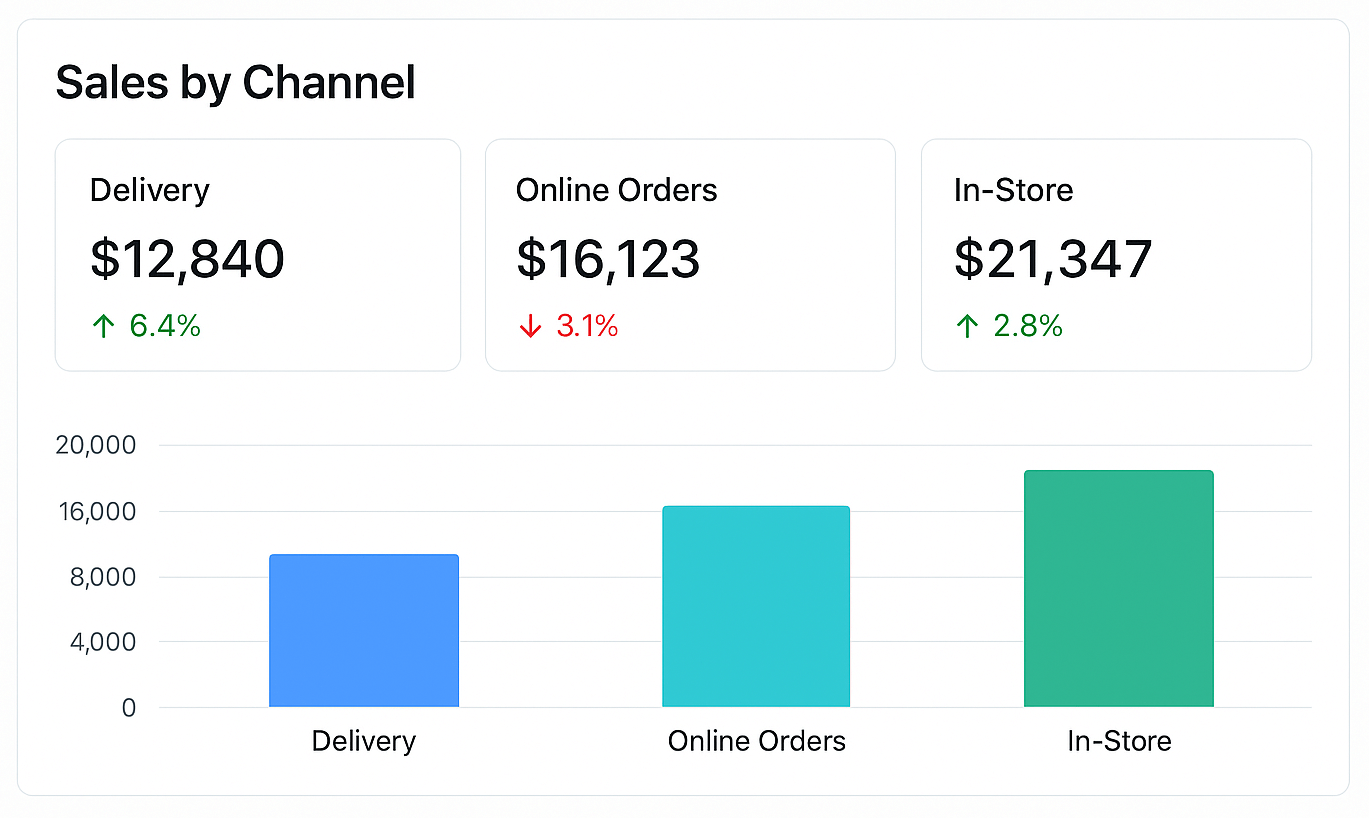 Know how guests order (in-store, delivery, app, or web). Optimize marketing spend across the channels that actually drive sales.